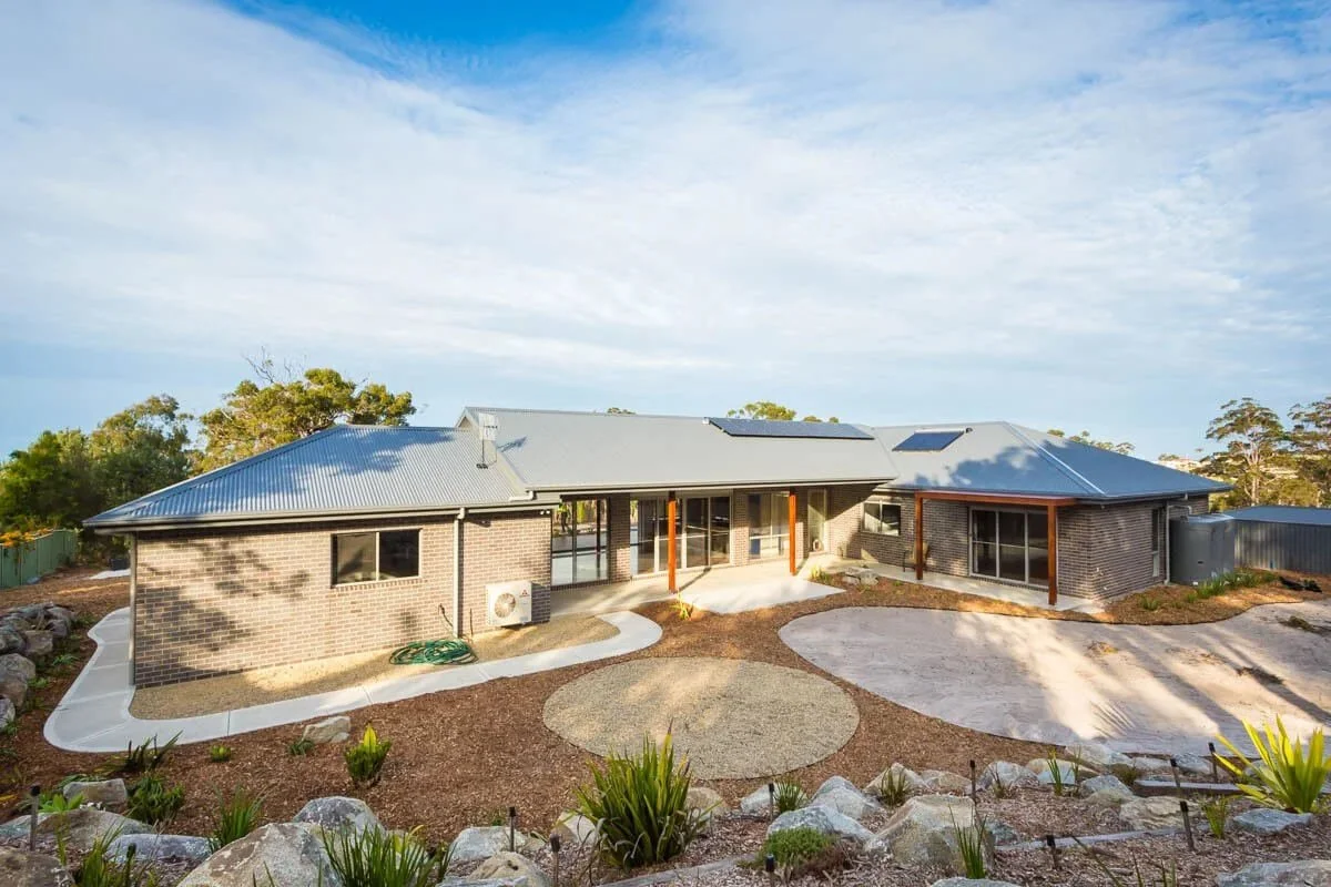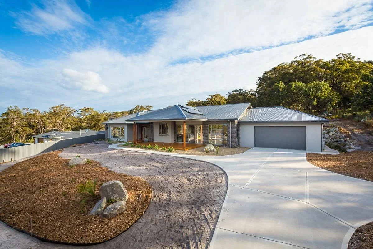 Our clients, preparing for retirement, had just moved into a new home on an acre of land. However, the property posed some challenges: built on a sandy, salt-exposed bank, it required a solution that could combat coastal winds, prevent damage to the new timber floors, and be low maintenance. The owners wanted a primarily native garden with sweeping lawns that would survive on natural rainfall, with no watering system in place. Additionally, it needed to be bushfire-resistant.